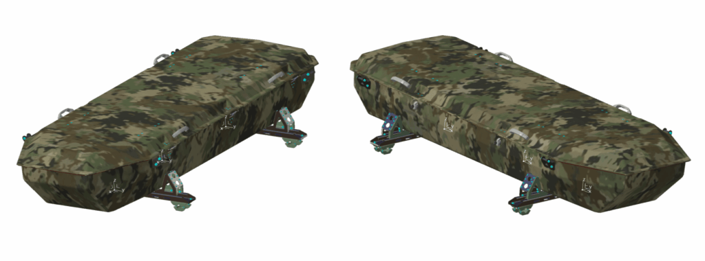 w technologiach balistycznych. Może być montowany na pojazdach jako schowek na wyposażenie a górna część może pełnić funkcje pokrywy balistycznej chroniącej człowieka w sytuacjach zagrożenia.