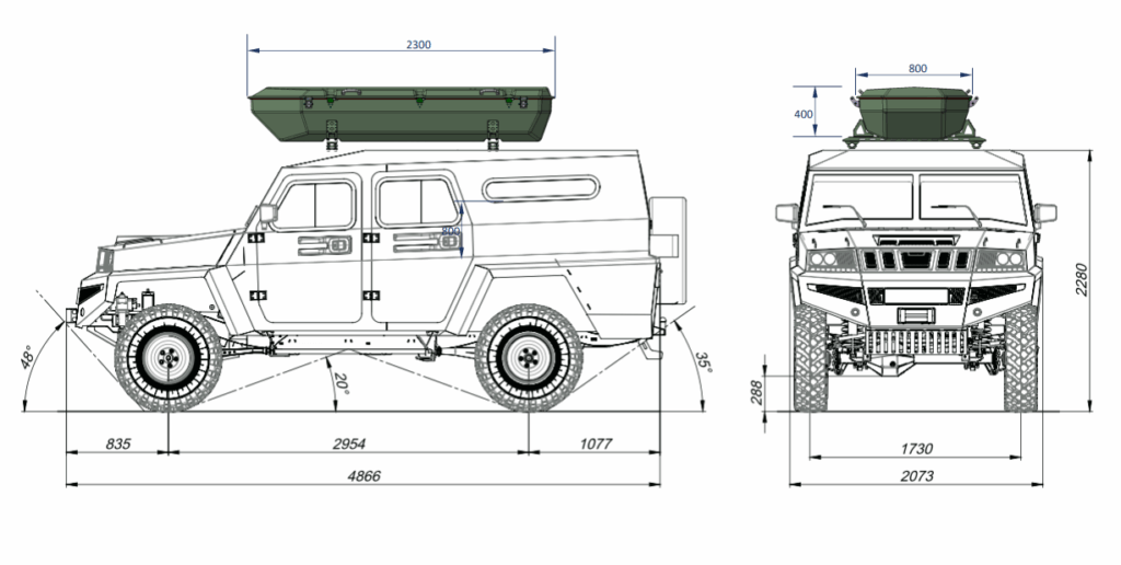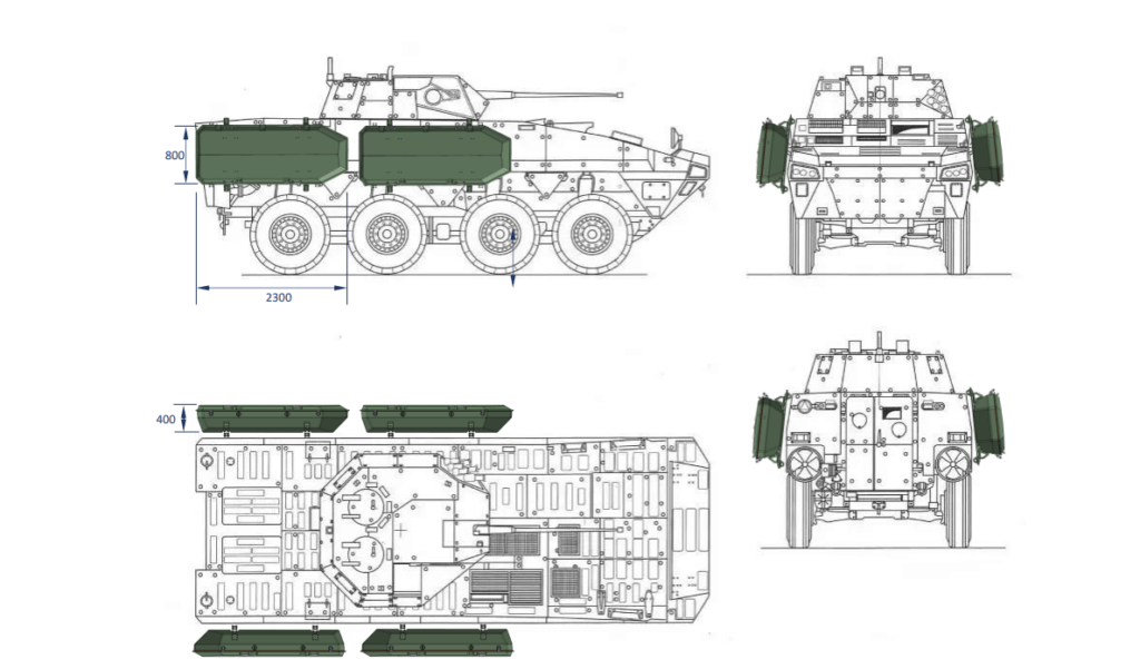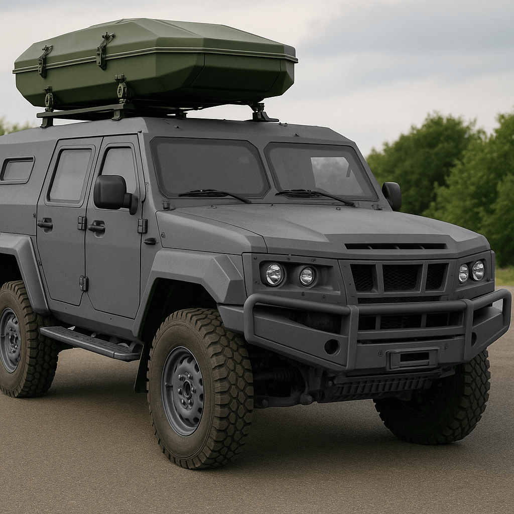 Może pełnić funkcję dodatkowej osłony balistycznej pojazdu, częściowo chroniąc pasażerów przed atakiem z użyciem małych dronów.
