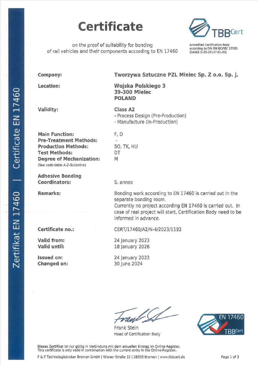 Dawniej Zakład Przetwórstwa Tworzyw Sztucznych PZL-Mielec Sp. z o.o. (ZPTSz) specjalizuje się w produkcji części i zespołów kompozytowych, tworzywowych i klejonych dla lotnictwa, kolejnictwa i wyrobów specjalnych.